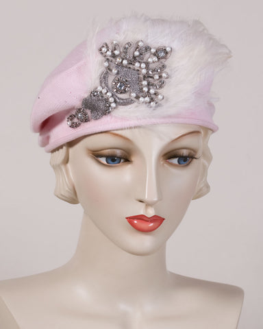 0534SBC Small Beret, cotton, pale pink with white