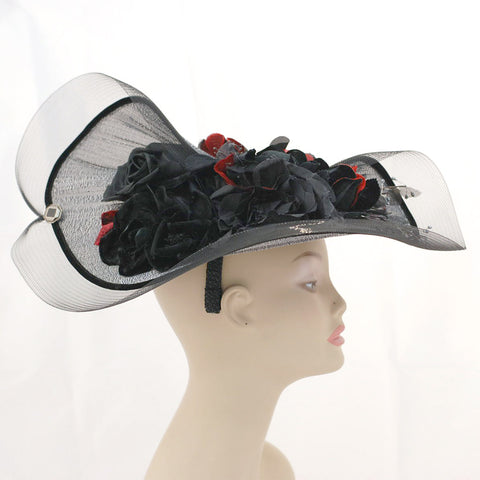 ZP3143FS Special Fascinator P: Drama; black, silver, & scarlet