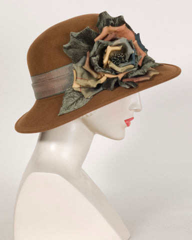0429DRV Darren, velour finished felt, tobacco with olive