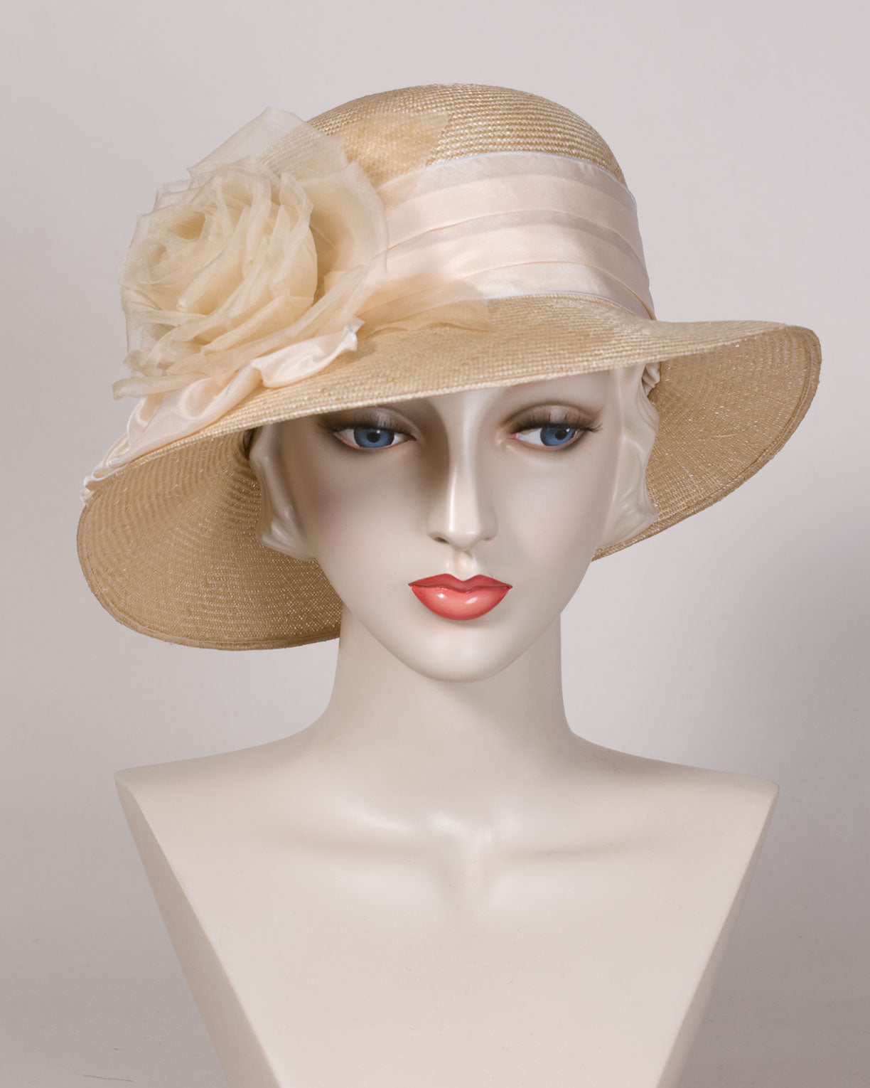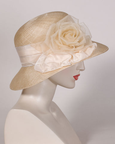 Silk organza handmade rose with taffeta band & bow