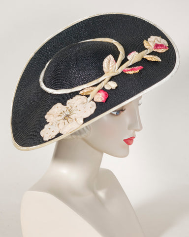 Handmade flower, twisted velvet ribbon & velvet leaves & velvet edge