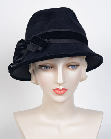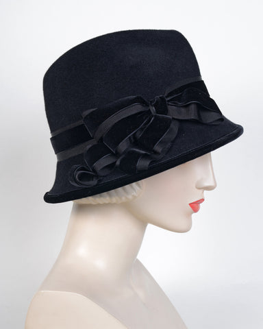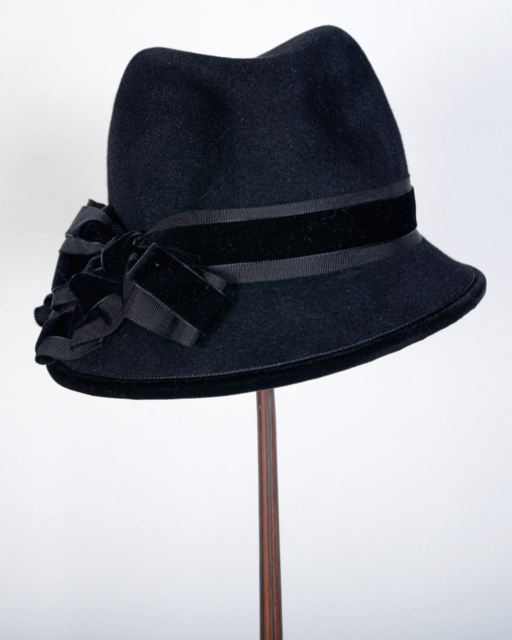 Grosgrain & velvet ribbon band, bow & drape