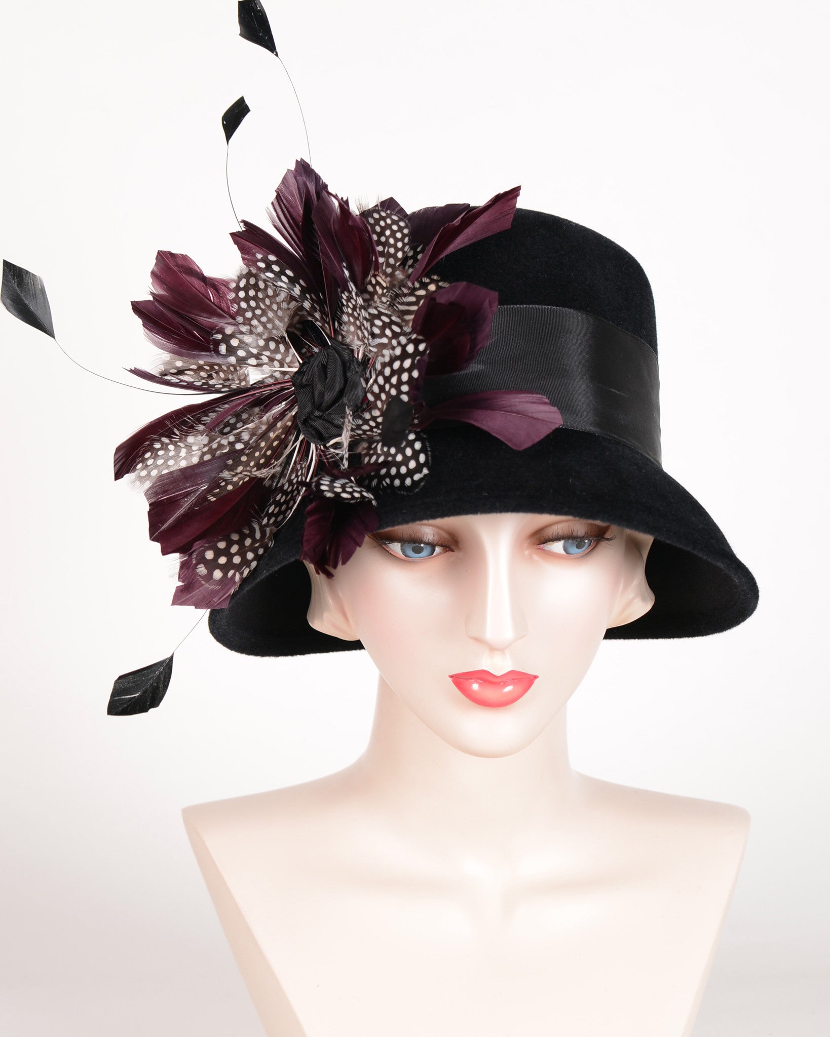 Two-tone polka dot feather spray with taffeta band