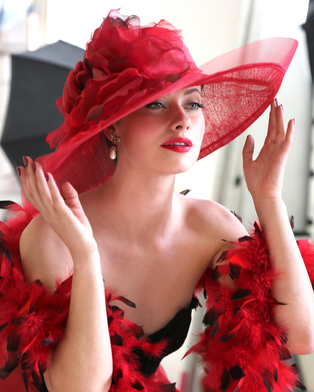 0525GCSP Grace, sisal crown/sinamay brim, scarlet