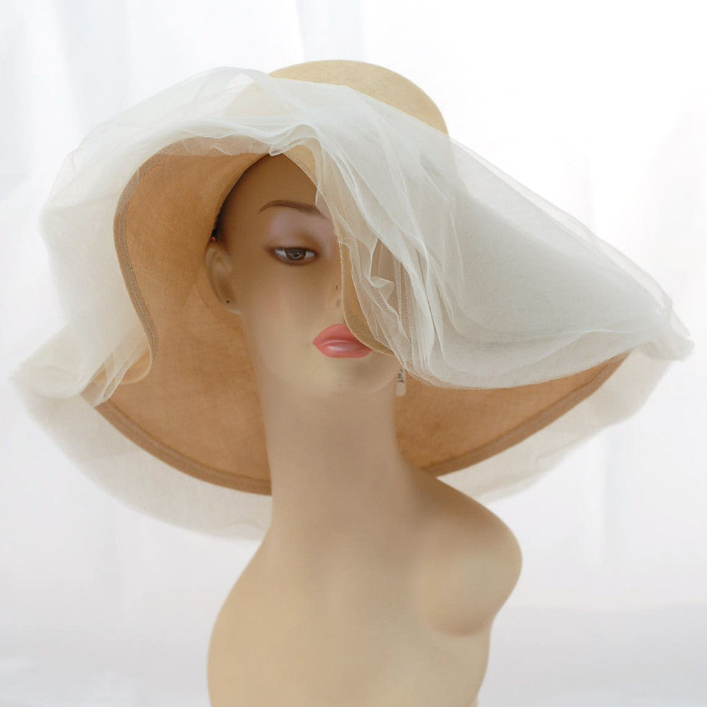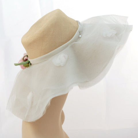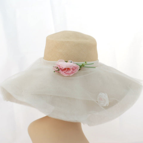 V997 Vintage: Irene of NY for Saks Fifth Ave., floppy natural w/ tulle, 22.5"