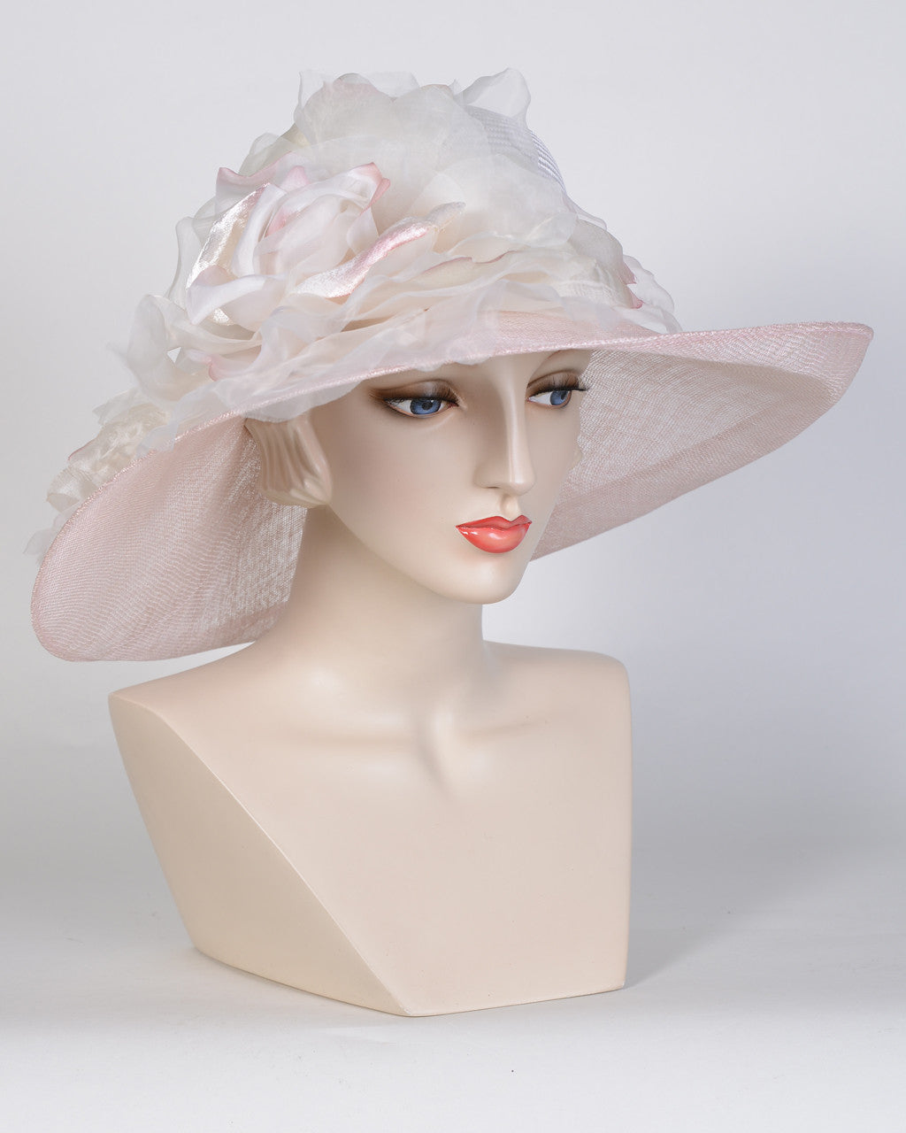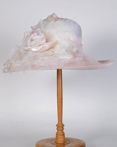 0756GCSP Grace, sisal crown/sinamay brim, white/pale rose